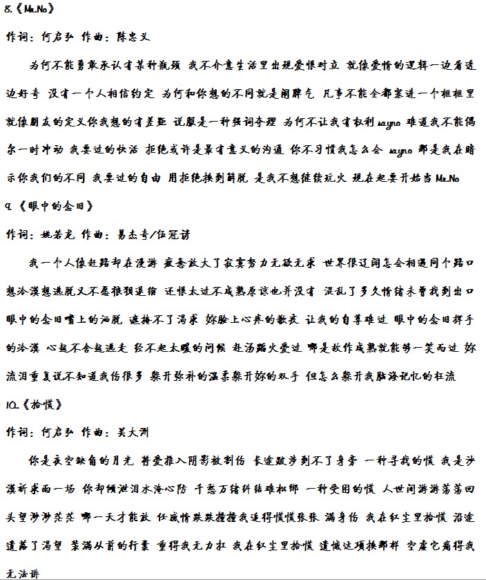 主题:[专辑]【空出来的时间】 歌词+词曲作者