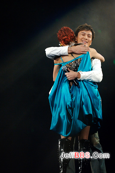 张信哲为任演出嘉宾特意从台湾飞抵香港,容祖儿跟阿哲之前在“容我信爱音乐会”的演出令人回味非常,全场歌迷得悉二人再度合唱《爱如潮水》,即掀起整晚高潮,歌迷跟著和唱,现场仿若变成世界卡啦OK般,气氛热烈。