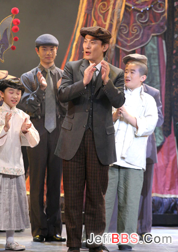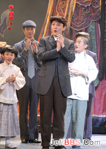 昨晚的演出进行了10分钟左右,饰演影生二叔的配角张信哲登台,表演流畅,惟一让人觉得有些别扭的是他的台词,总有一种“奶油气”。在随后的京剧演唱环节中,他的表现把观众给“震”了。这个唱段主要是表现热爱电影的新青年影生二叔与身为戏院老板父亲的冲突。6分钟的京剧唱段,字正腔圆,张信哲堪称超级票友。在演唱过程中和演唱结束后,喝彩声、掌声始终不断。