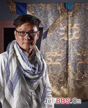 张信哲:现在非常多,而且现在越做越好。因为一定是东西贵了,人家才会愿意做假的。过去比较少,因为价钱不算高。很简单地说,你要重新绣一件龙袍,可能工钱还不如买一件旧的,所以那个时候的价钱他们不会愿意做旧,做仿的。但是因为现在织绣这几年来织绣越来越受到重视,所以现在开始有很多仿的东西出来。不管是绣的或者是织的或者是缂丝,因为价钱起来了,反而有很多仿的东西出来。