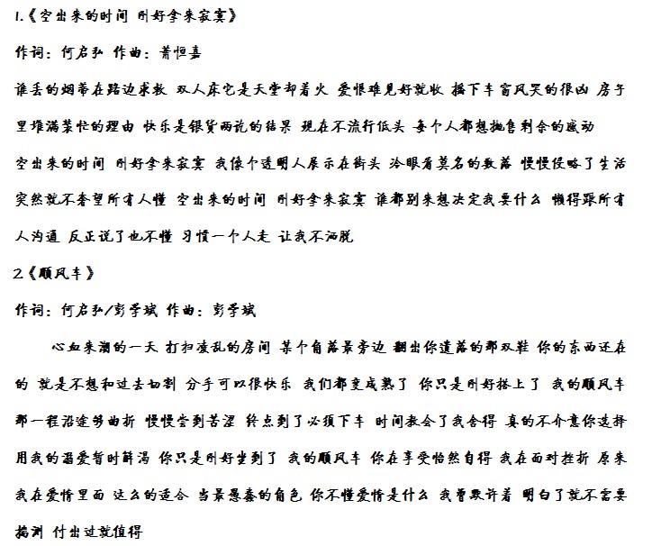 主题:[专辑]【空出来的时间】 歌词+词曲作者
